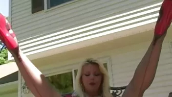 Bionda in calze di pizzo mostra il suo corpo film porno con anziane